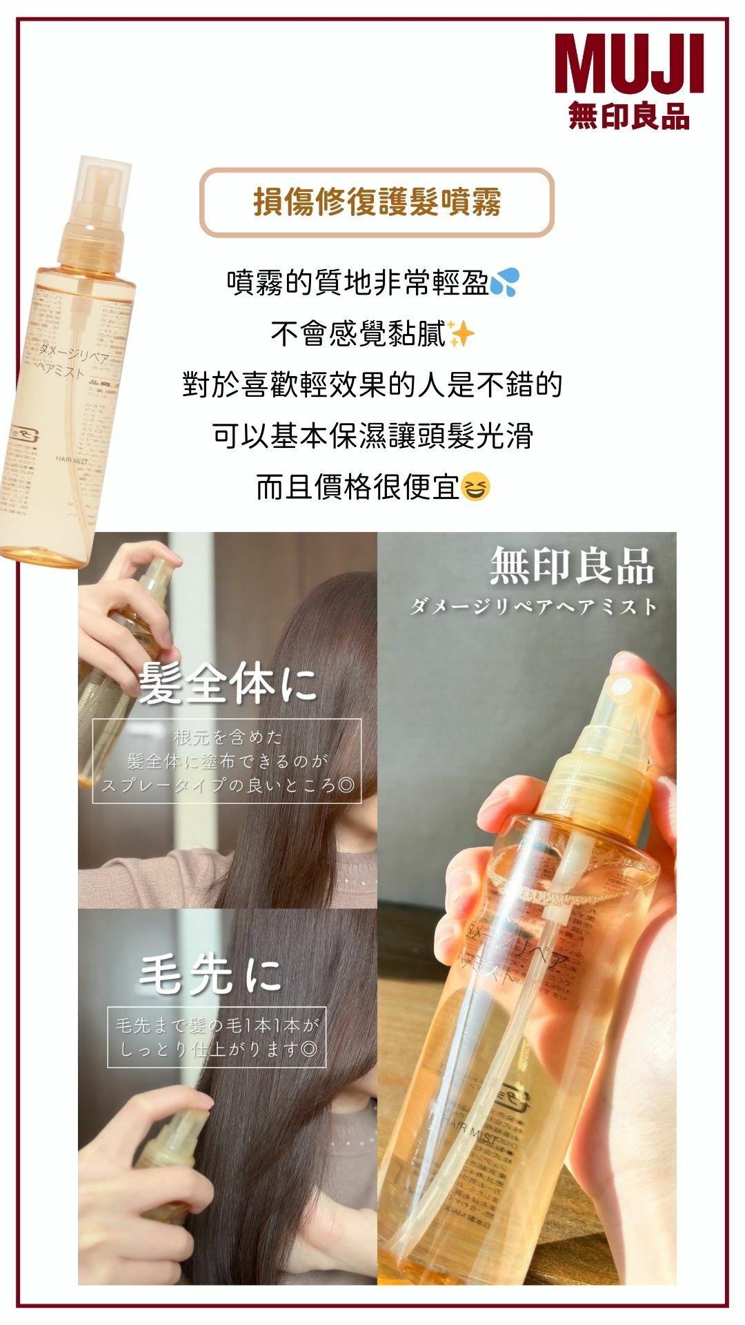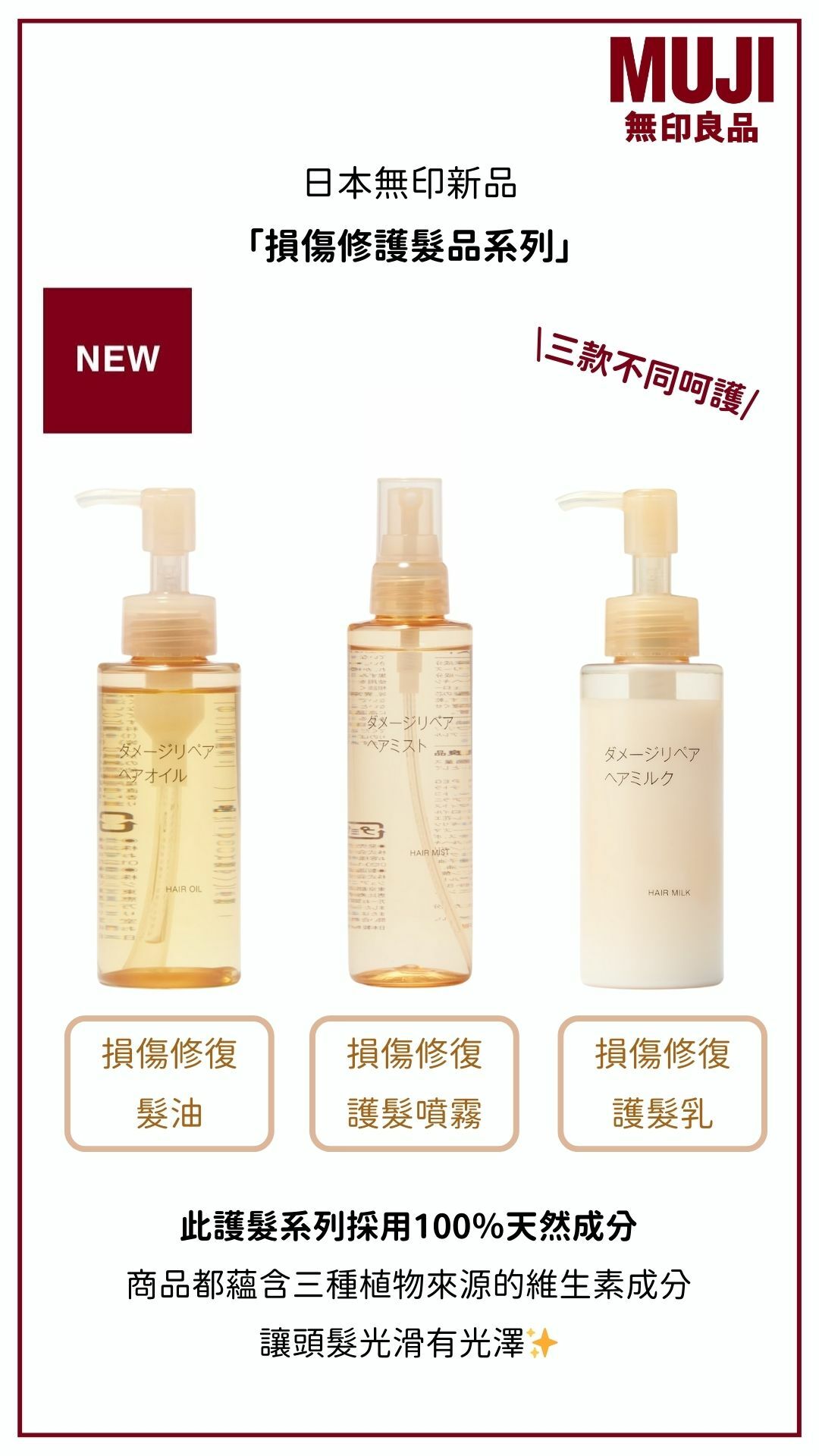 日本無印現在也推出了損傷護髮系列啦!