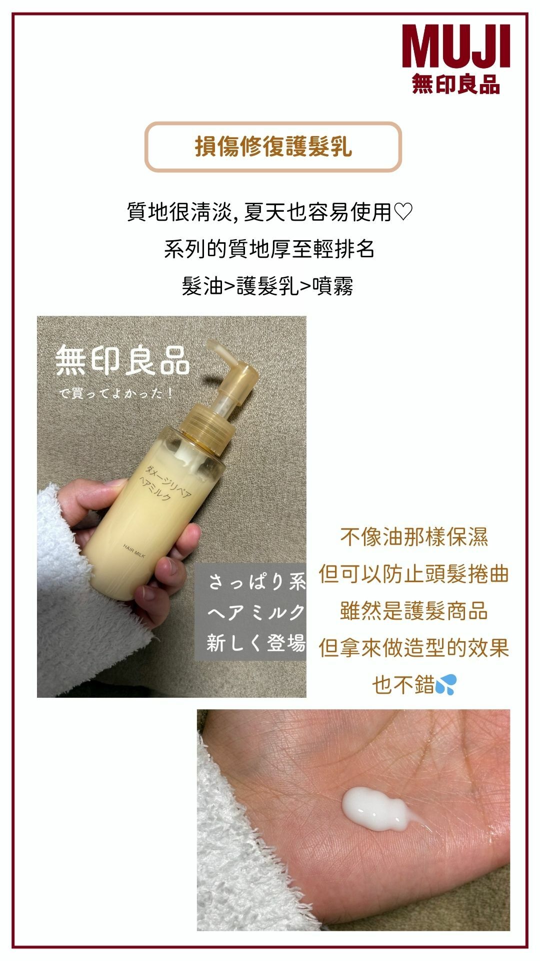 除此之外無印也有推出護髮乳